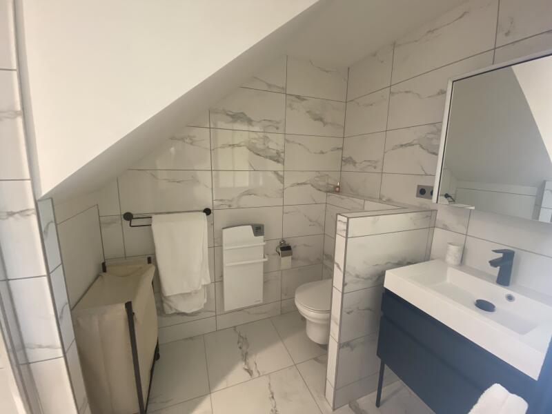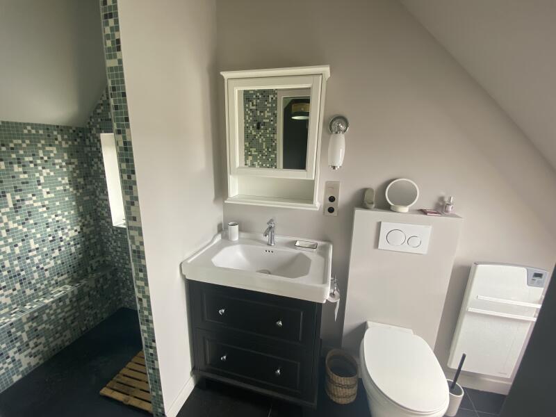 Toutes deux attenantes à la salle de bain, baignoire et WC séparé