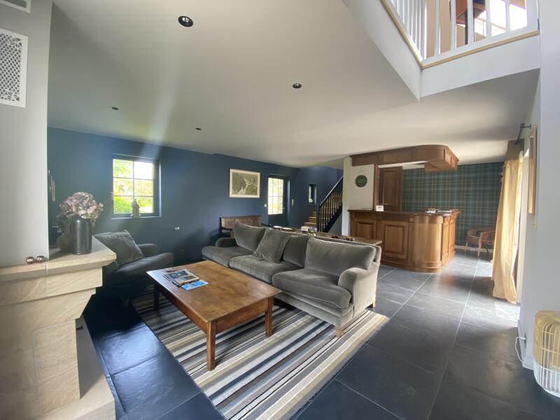 - le salon dispose d’une cheminée , d’un bar, et donne sur deux terrasses avec une exposition différente.