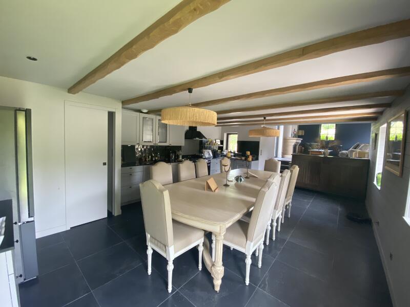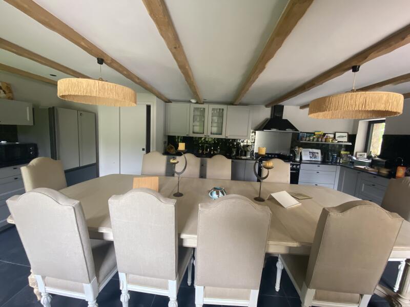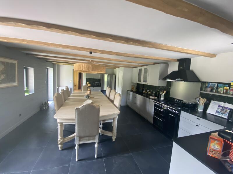 - il y a une grande cuisine avec une table permettant de manger tous ensemble. La cuisine est totalement équipée.